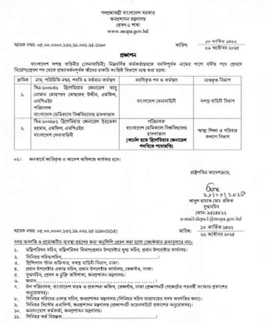 রোববার (২৬ অক্টোবর) জনপ্রশাসন মন্ত্রণালয় থেকে জারি করা প্রজ্ঞাপনে এ কথা জানানো হয়।