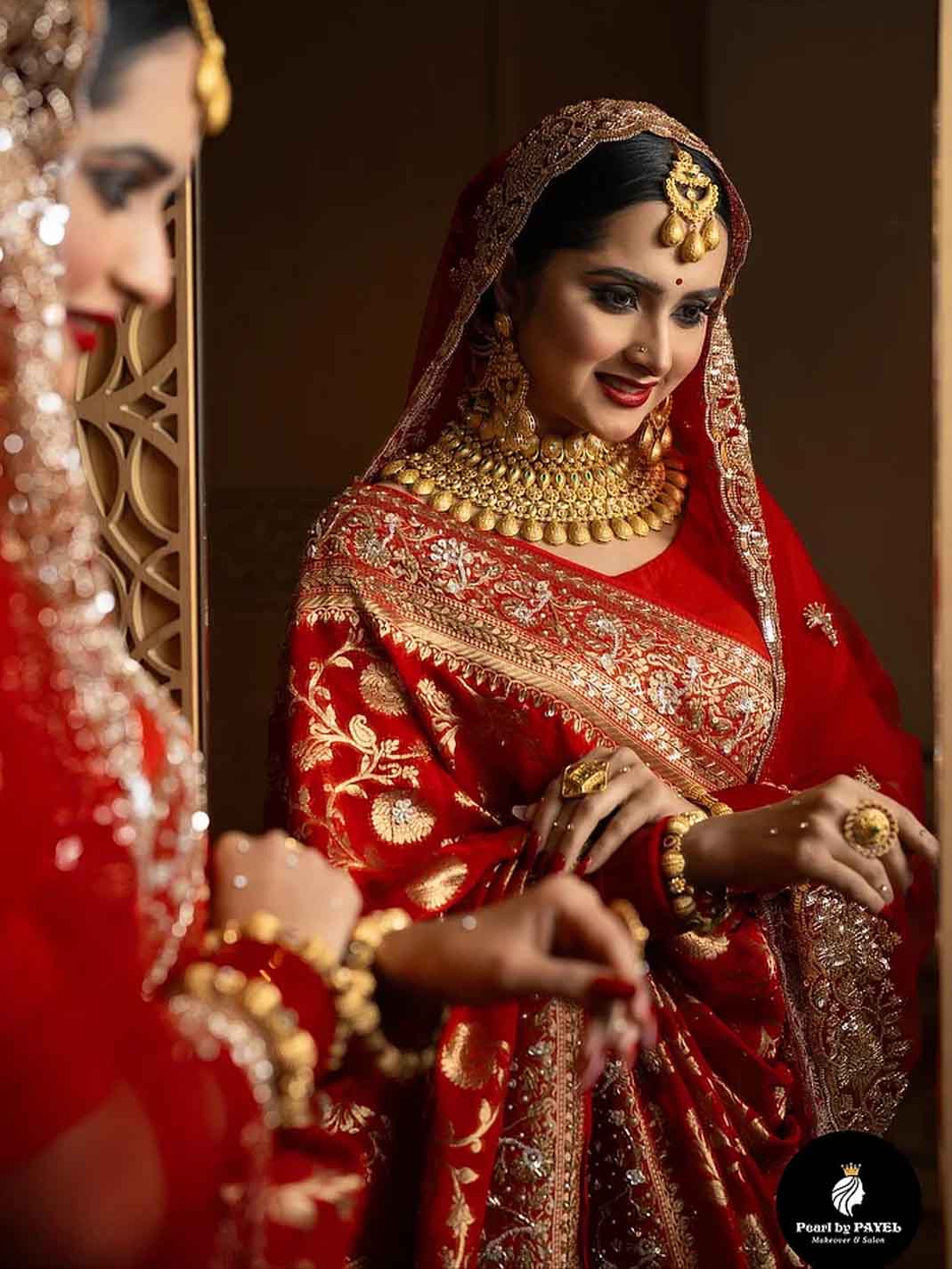 কেয়া পায়েল নিজেই পার্ল বাই পায়েলের গর্জিয়াস মেকওভারে সামনে এসেছেন তিনটি ভিন্ন ব্রাইডাল আমেজের লুকে। প্রথমটি একেবারেই বিয়ের সাজ। আর বাকি দুটি লুক অনুপ্রেরণা হতে পারে বাগদান, গায়ে হলুদ বা বিবাহোত্তর সংবর্ধনার সাজে।