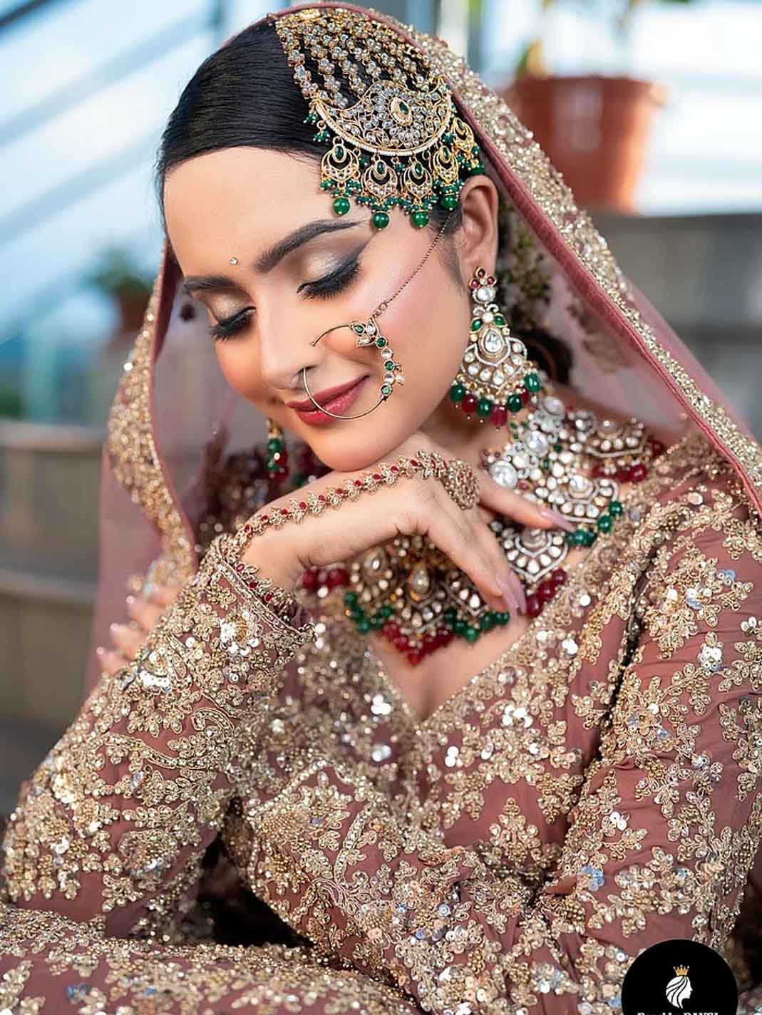 জড়োয়া গয়নার সেটের সঙ্গে ব্রাইডাল কালিরা আর হাতভর্তি চুড়ি পরেছেন কেয়া